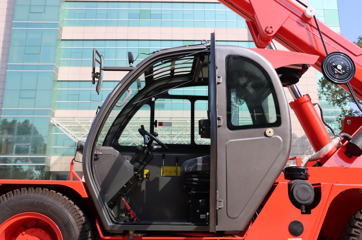 7、可折疊式叉架,在沒有作業(yè)或者不需要用到叉架吊裝貨物的情況下,可自行把叉架折疊,提供了更廣闊的視野,使用戶駕駛更加靈活方便;